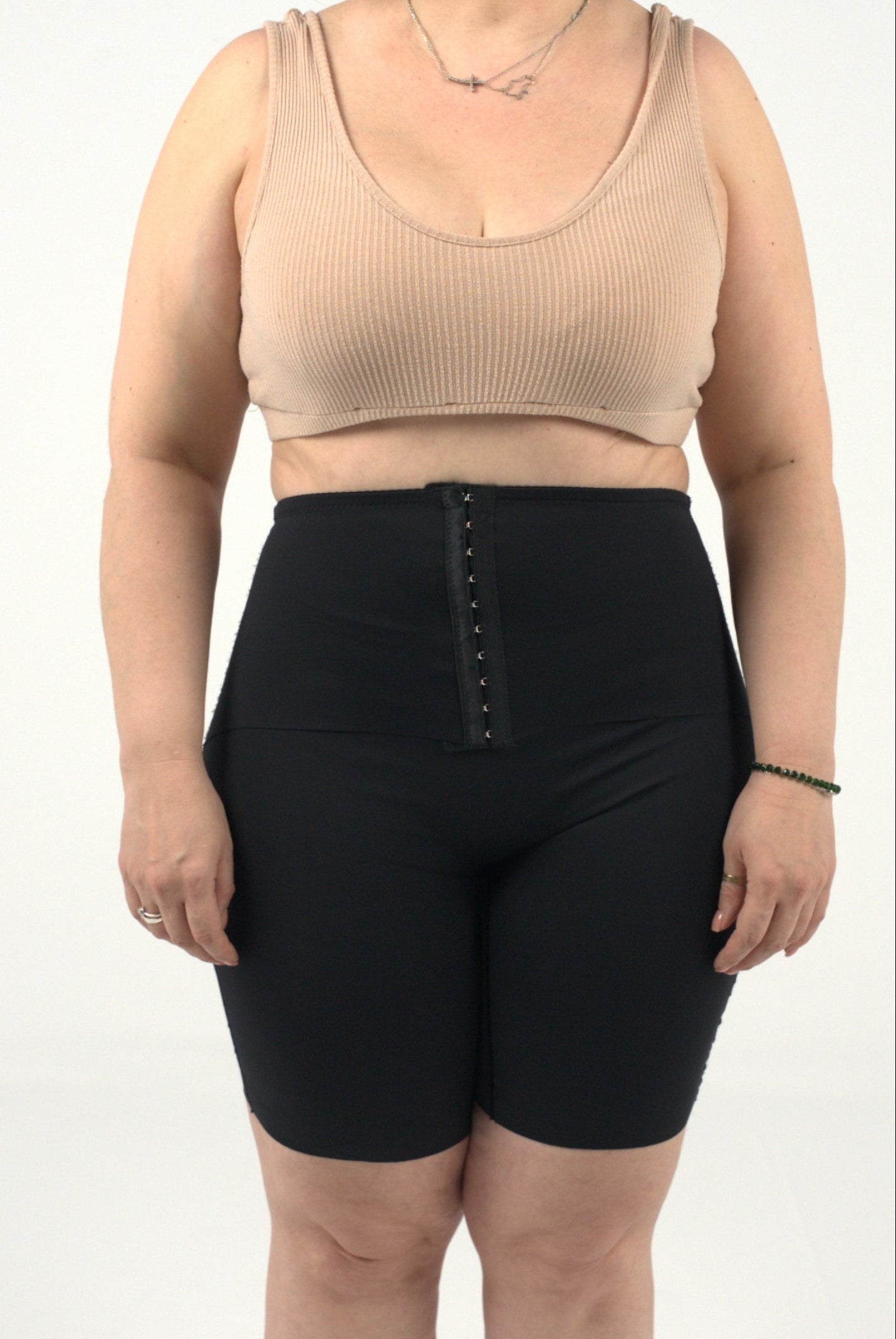 المشد الشورت مع البطن مصنوع من خامة طبية ناعمة ومريحة على البشرة مصمم ليغطي نصف البطن الأسفل والفخذين والخصر بشكل مثالي يساعد في تشكيل قوام الساعة الرملية من خلال تحديد الخصر وشد ترهلات الجسم مع الاستخدام اليومي يساهم في منح الجسم مظهراً منحوتاً ومتناسقاً مما يعزز الثقة والشعور بالراحة طوال اليوم